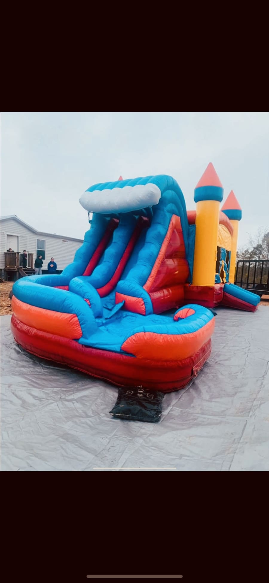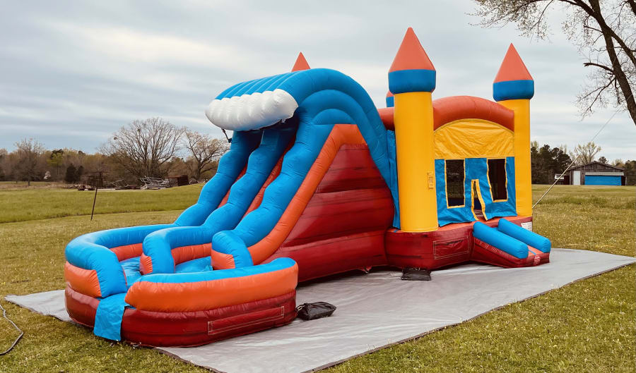 If you want versatility, than this is the inflatable for you! Can be used with water or without. On hot or cold days! Indoors or outside! This bounce house/slide combo is ideal if you are wanting something bigger than a regular bounce house, but not as big as a slide. This can safely and easily accommodate children of all ages and sizes. With a super cool double slide and a curve at the end, your children will be kept busy ALL DAY LONG! ☀️🌈💦