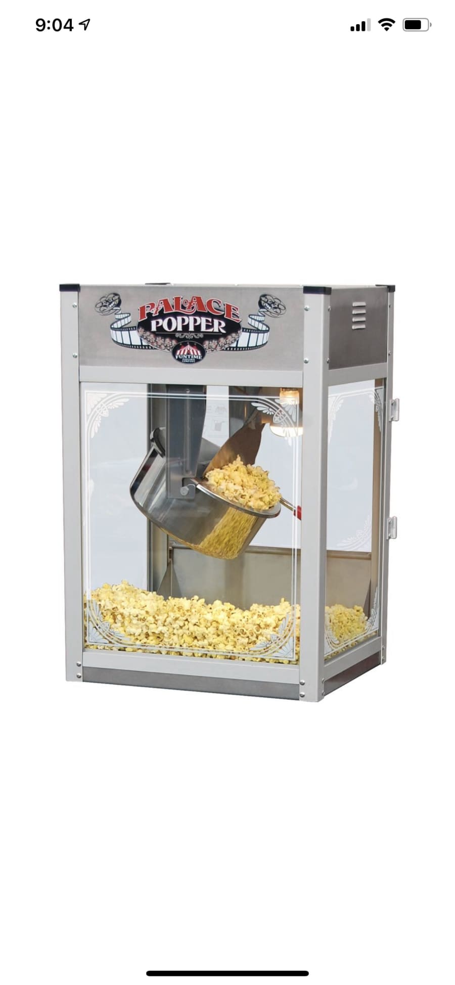Large 16 oz. commercial quality stainless steel kettle. Heats up quickly and disperses heat evenly to maximize the amount of kernels popped. Switches include, spot light warmer, stirrer and pot heater. Heavy-duty powder coated steel construction. All supplies sold separately 🍿
